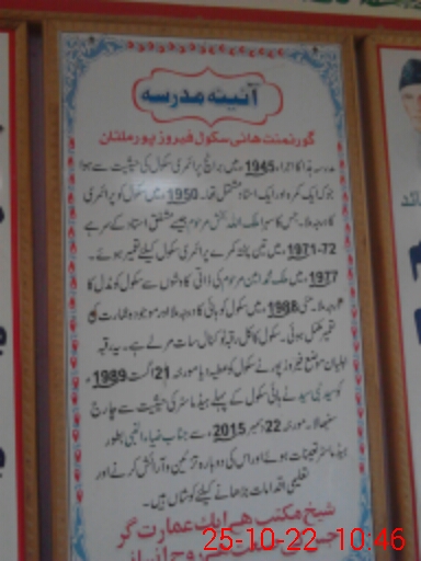 | EMIS Code: 36130042 | Name of School: GHS FEROZ PUR MOUZA FEROZEPUR P/O SKINDRA ABAD TEH. & DISTT. MULTAN | |||