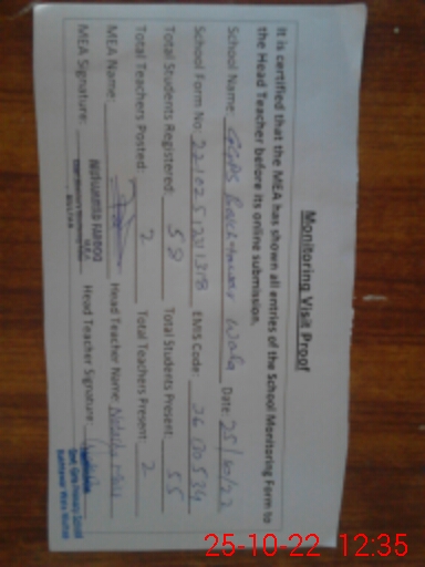 | Certified that this School was Inspected by the Undersigned MEA/DMO Today and the Information Stated Above is as Per Record. | |||||