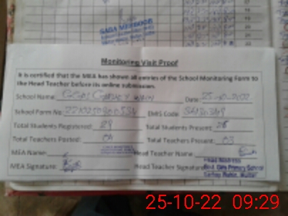 | Attendance Register | Head Teacher | MEA with School | Visit Proof |