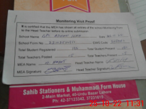 | EMIS Code: 31150181 | Name of School: GPS ADHAN WAH | |||