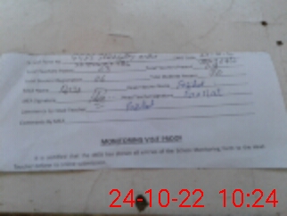 | Attendance Register | Head Teacher | MEA with School | Visit Proof |
