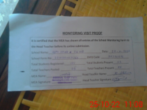 | Attendance Register | Head Teacher | MEA with School | Visit Proof |