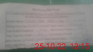 | Attendance Register | Head Teacher | MEA with School | Visit Proof |