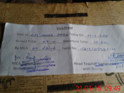 | Attendance Register | Head Teacher | MEA with School | Visit Proof |