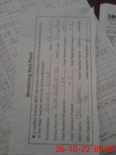 | Certified that this School was Inspected by the Undersigned MEA/DMO Today and the Information Stated Above is as Per Record. | |||||