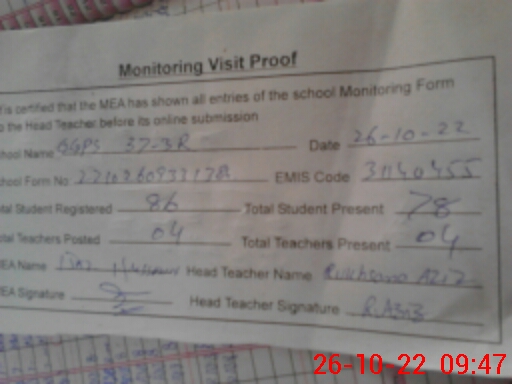 | EMIS Code: 31140455 | Name of School: GGPS CHAK NO. 37/3-R | |||