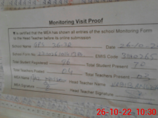 | EMIS Code: 31140265 | Name of School: GPS CHAK NO.36/3-R | |||