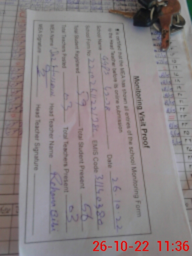 | Attendance Register | Head Teacher | MEA with School | Visit Proof |
