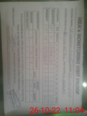| Certified that this School was Inspected by the Undersigned MEA/DMO Today and the Information Stated Above is as Per Record. | |||||