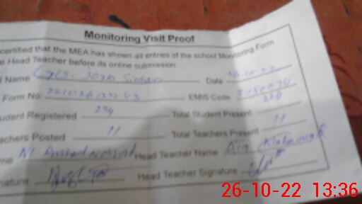 | Certified that this School was Inspected by the Undersigned MEA/DMO Today and the Information Stated Above is as Per Record. | |||||