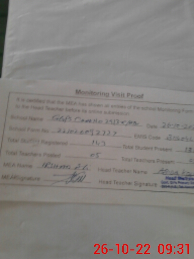 | Attendance Register | Head Teacher | MEA with School | Visit Proof |