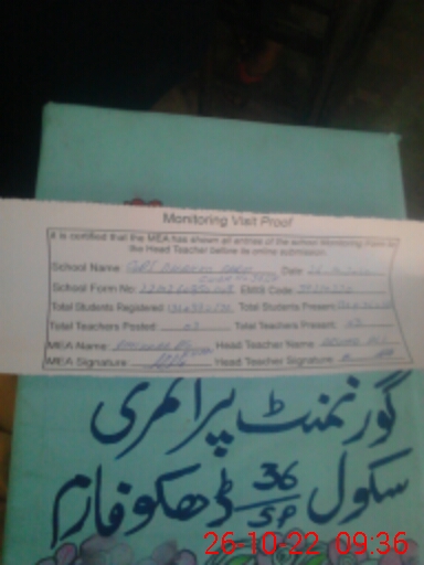 | EMIS Code: 39210220 | Name of School: GPS DHAKKO FARM CHAK NO. 36/SP SALAMAT PURA | |||