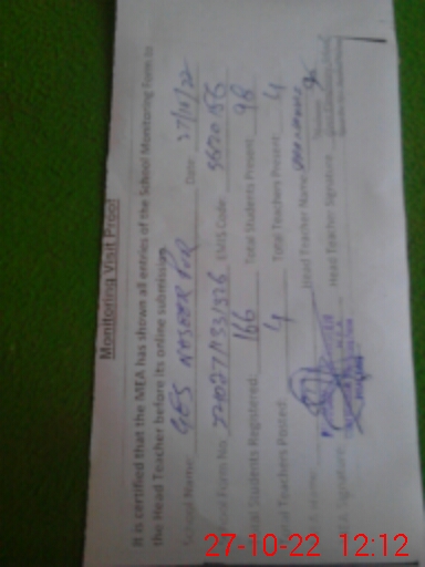 | Certified that this School was Inspected by the Undersigned MEA/DMO Today and the Information Stated Above is as Per Record. | |||||