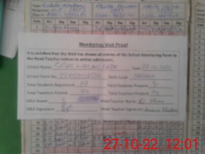 | Attendance Register | Head Teacher | MEA with School | Visit Proof |