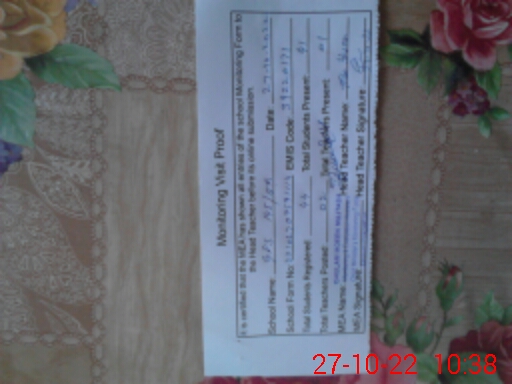 | Attendance Register | Head Teacher | MEA with School | Visit Proof |