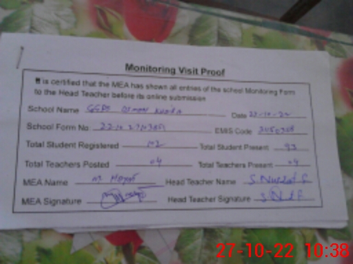 | Certified that this School was Inspected by the Undersigned MEA/DMO Today and the Information Stated Above is as Per Record. | |||||