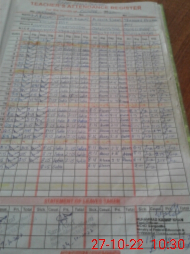 | CNIC | Full Name | Designation | R/C | Absence During Last Calender Month |