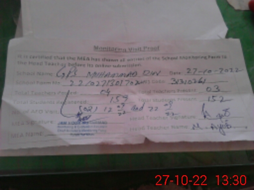 | EMIS Code: 31310261 | Name of School: GPS MUHAMMAD DIN | |||