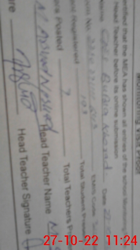 | Certified that this School was Inspected by the Undersigned MEA/DMO Today and the Information Stated Above is as Per Record. | |||||