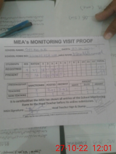 | Attendance Register | Head Teacher | MEA with School | Visit Proof |