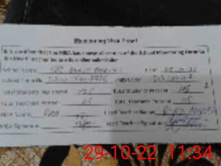 | Monitoring Date: 29-10-2022 | Start Time: 29-10-2022 11:01 AM | End Time: 29-10-2022 11:36 AM | Name of MEA: Ra**** Hu**** Gi**** | |
