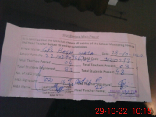 | Certified that this School was Inspected by the Undersigned MEA/DMO Today and the Information Stated Above is as Per Record. | |||||