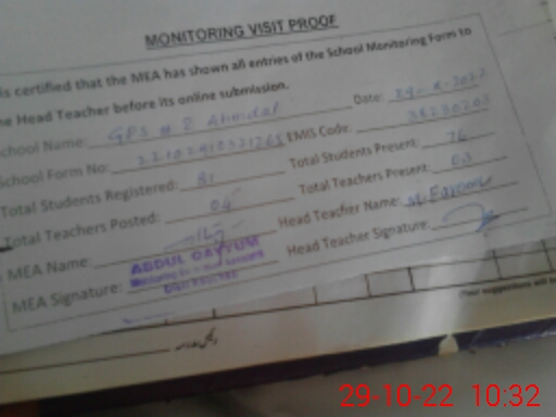 | EMIS Code: 38230203 | Name of School: GPS NO. 2 AHMEDAL | |||