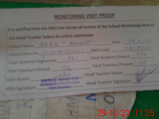 | EMIS Code: 38230202 | Name of School: GES NO. 1 AHMEDAL | |||