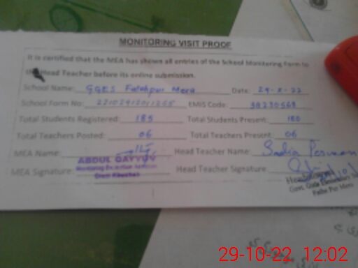 | EMIS Code: 38230568 | Name of School: GGES FATEH PUR MERA | |||