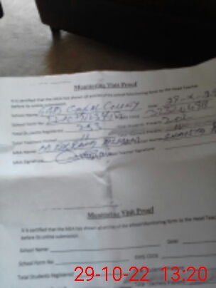 | Attendance Register | Head Teacher | MEA with School | Visit Proof |
