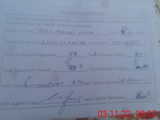 | EMIS Code: 33230335 | Name of School: GPS MALAY WALA | |||