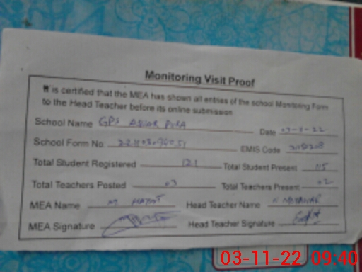 | EMIS Code: 31150208 | Name of School: GPS ASWAR PURA | |||