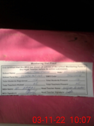 | Certified that this School was Inspected by the Undersigned MEA/DMO Today and the Information Stated Above is as Per Record. | |||||