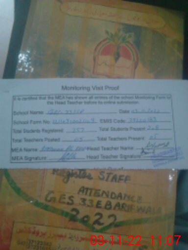 | EMIS Code: 39220183 | Name of School: GES 33 EB | |||