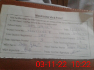 | Attendance Register | Head Teacher | MEA with School | Visit Proof |