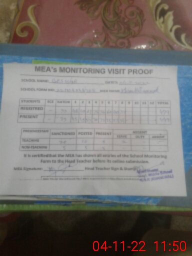 | Attendance Register | Head Teacher | MEA with School | Visit Proof |