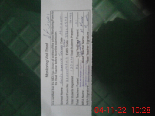 | Attendance Register | Head Teacher | MEA with School | Visit Proof |