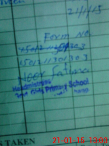 | Name: KA**** PE**** Designation: (School Headmaster's/Headmistress's) PST Phone/Cell Number: 03**** |