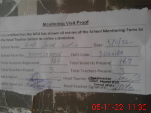 | Attendance Register | Head Teacher | MEA with School | Visit Proof |