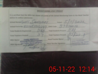 | Certified that this School was Inspected by the Undersigned MEA/DMO Today and the Information Stated Above is as Per Record. | |||||