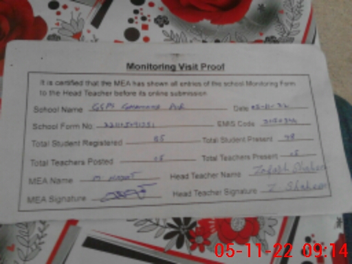 | EMIS Code: 31150344 | Name of School: GGPS GHUMAND PUR | |||