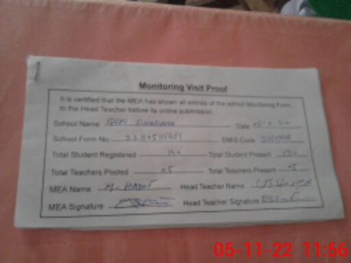 | Attendance Register | Head Teacher | MEA with School | Visit Proof |