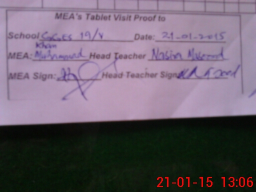 | Attendance Register | Head Teacher | MEA with School | Visit Proof |