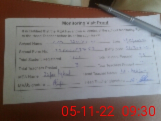 | Monitoring Date: 05-11-2022 | Start Time: 05-11-2022 09:17 AM | End Time: 05-11-2022 09:31 AM | Name of MEA: Za**** Iq**** BN**** | |