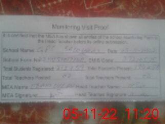 | Attendance Register | Head Teacher | MEA with School | Visit Proof |