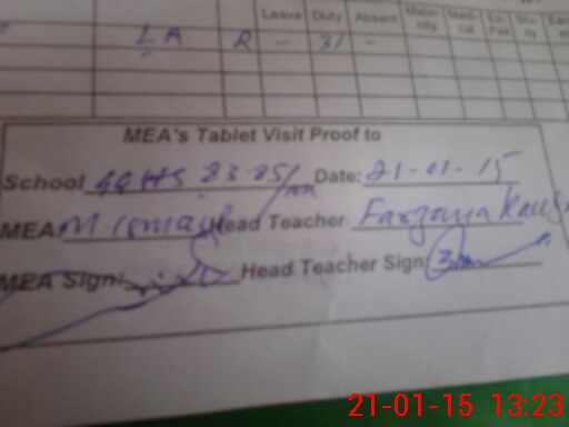 | Attendance Register | Head Teacher | MEA with School | Visit Proof |