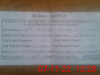 | Attendance Register | Head Teacher | MEA with School | Visit Proof |