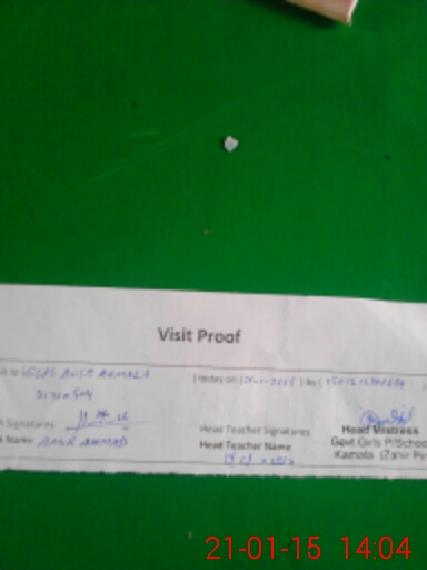| School Visited by School Health & Nutrition Supervisor (No. of Visits) | 1 | Name1: | Muhammad Javeed | Name2: | Nil |