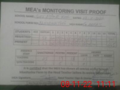 | Attendance Register | Head Teacher | MEA with School | Visit Proof |