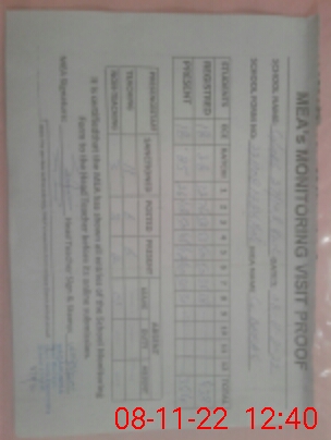 | Attendance Register | Head Teacher | MEA with School | Visit Proof |